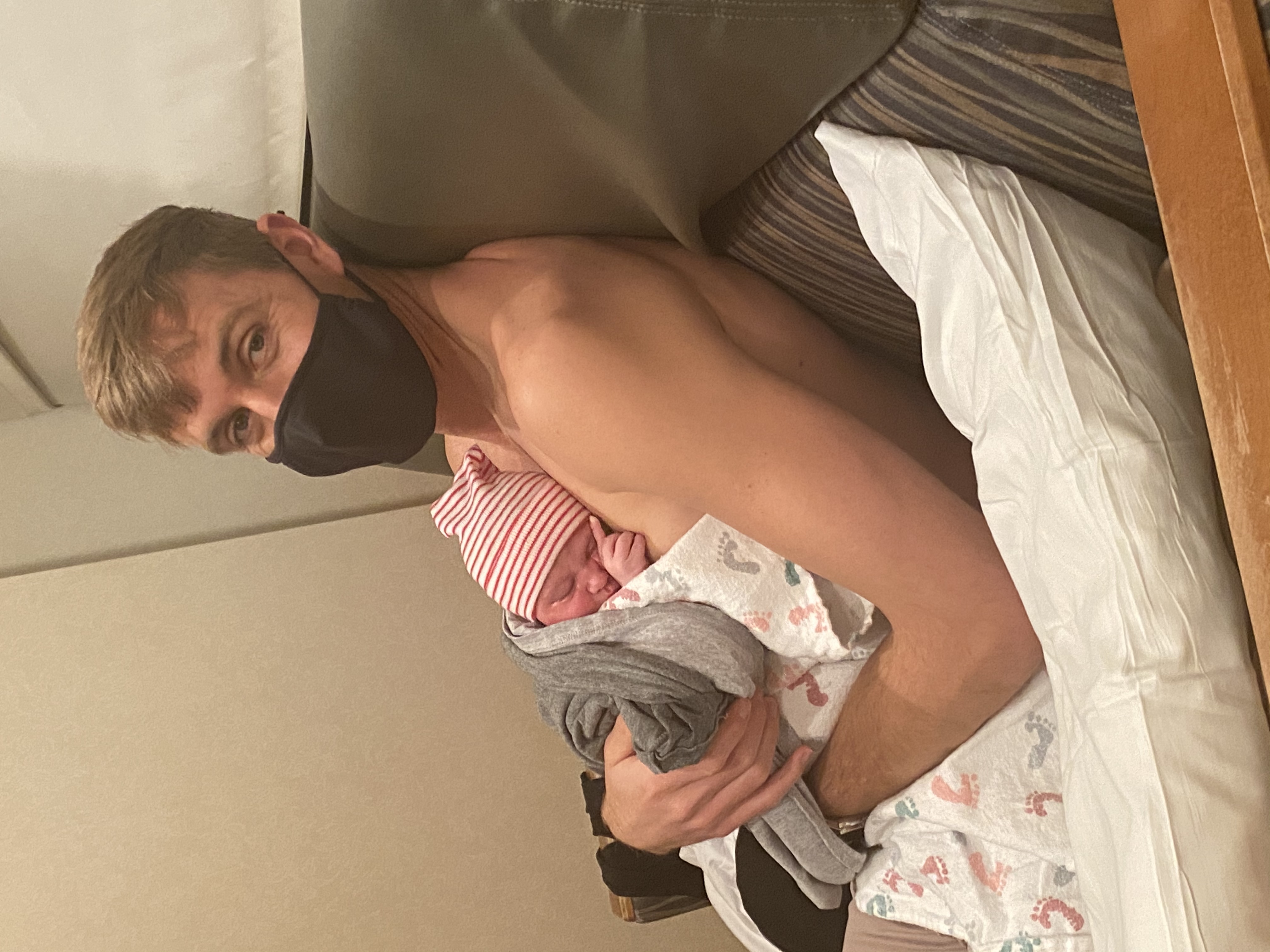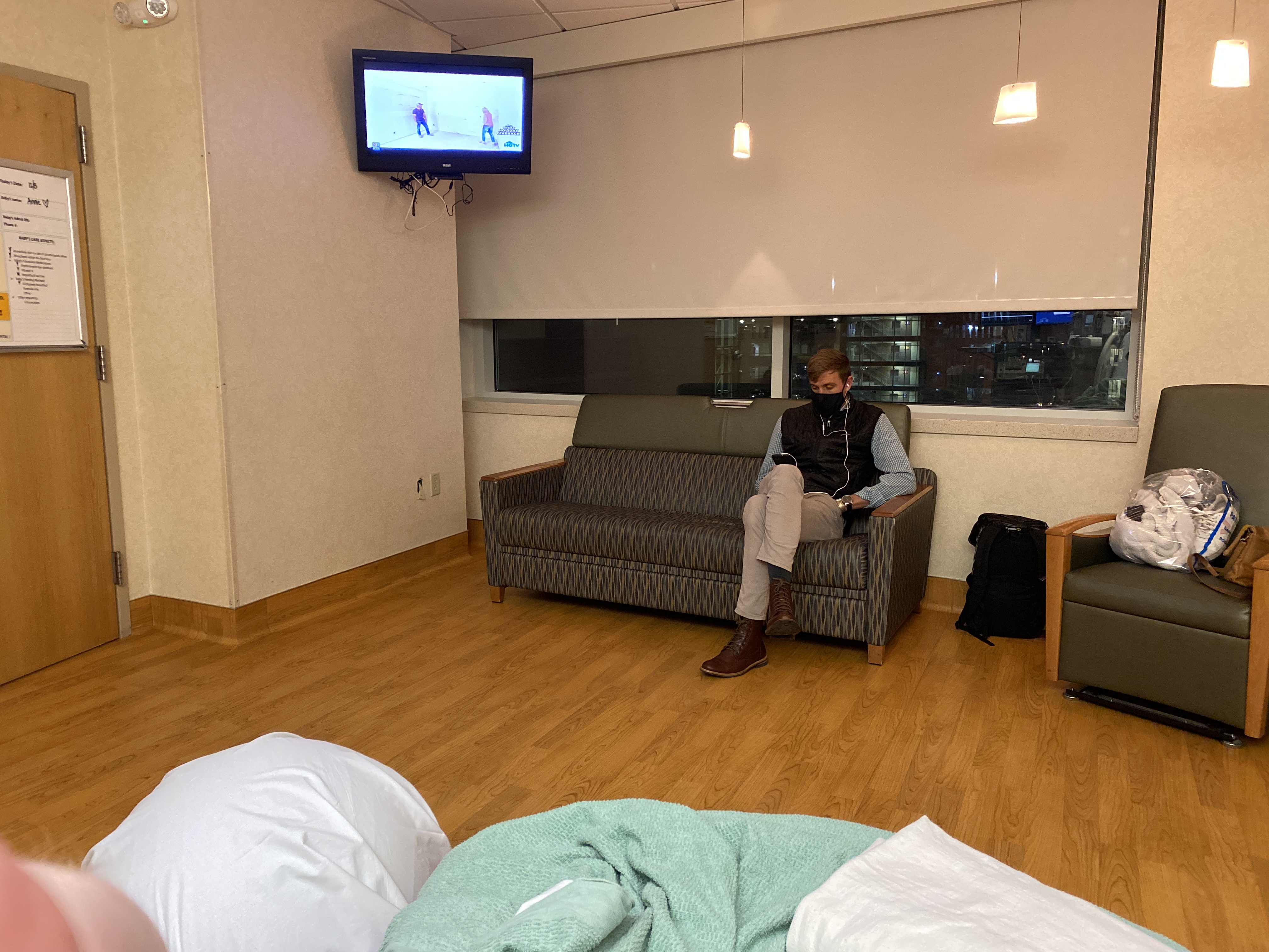 Mitch got there shortly after I got to my room and we were just hanging out waiting to figure out a game plan. This was probably around 4pm. The midwife decided to strip my membranes since I was about 1 cm dilated and see if that would kickstart labor. I was already having contractions but this definitely amped things up a bit. I was having contractions every 5ish minutes, but they weren’t super painful. After probably an hour of these, they slowed down, so we discussed a foley bulb (basically a balloon they insert into the cervix to help ripen and dilate the cervix). I agreed to try it, but when they went to insert it, I was already at a 3, so they decided I didn’t need it. After that, we decided to speed things up a bit with a little Pitocin.