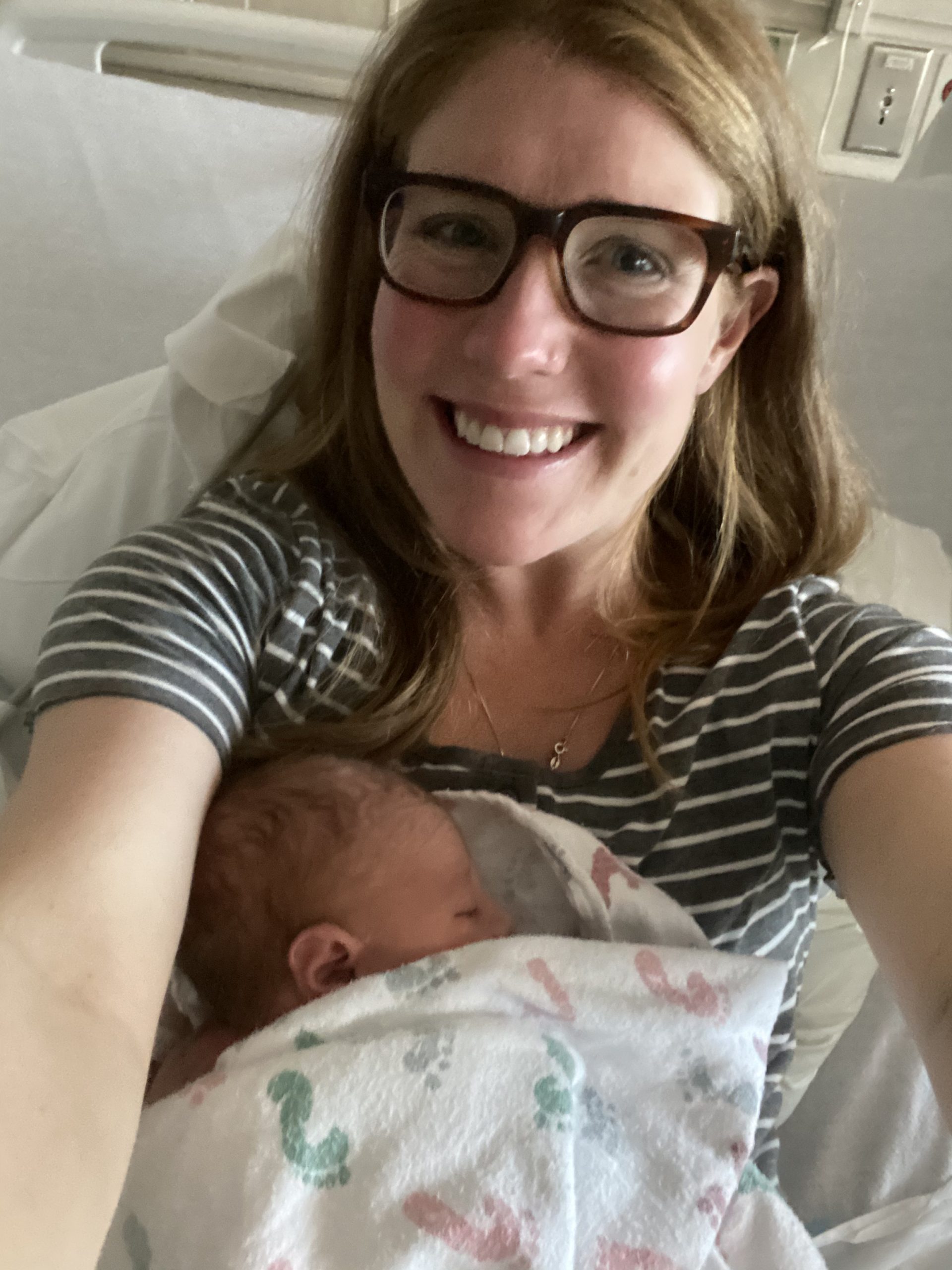 Mitch got there shortly after I got to my room and we were just hanging out waiting to figure out a game plan. This was probably around 4pm. The midwife decided to strip my membranes since I was about 1 cm dilated and see if that would kickstart labor. I was already having contractions but this definitely amped things up a bit. I was having contractions every 5ish minutes, but they weren’t super painful. After probably an hour of these, they slowed down, so we discussed a foley bulb (basically a balloon they insert into the cervix to help ripen and dilate the cervix). I agreed to try it, but when they went to insert it, I was already at a 3, so they decided I didn’t need it. After that, we decided to speed things up a bit with a little Pitocin.