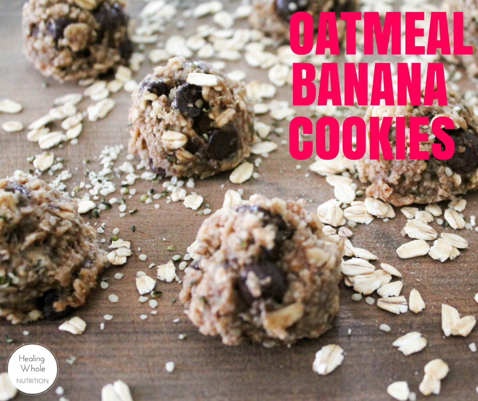 Yummmy! These are my new favorite cookies I think. Lately I’ve been making healthier cookies to stash in the freezer to easily grab when the babies are born, and these are some of the easiest and tastiest I’ve made. The base is just mashed banana and GF oats, so they’re super easy to throw together and everything can be stirred in one bowl.