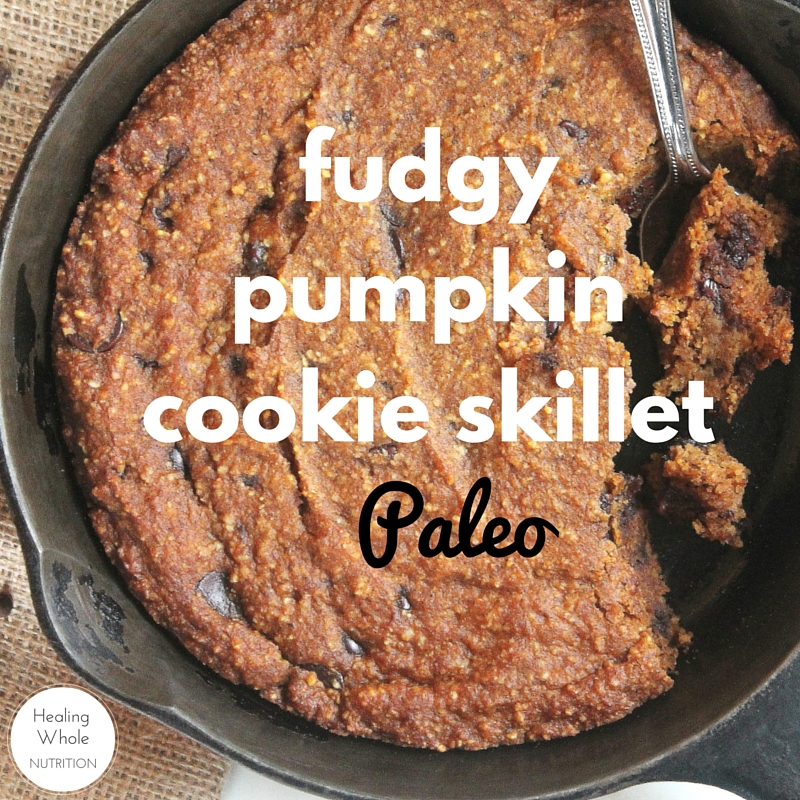 And that’s how this skillet of deliciousness came about. And it’s a relatively healthy way to enjoy a gooey, warm, pumpkin-y cookie.